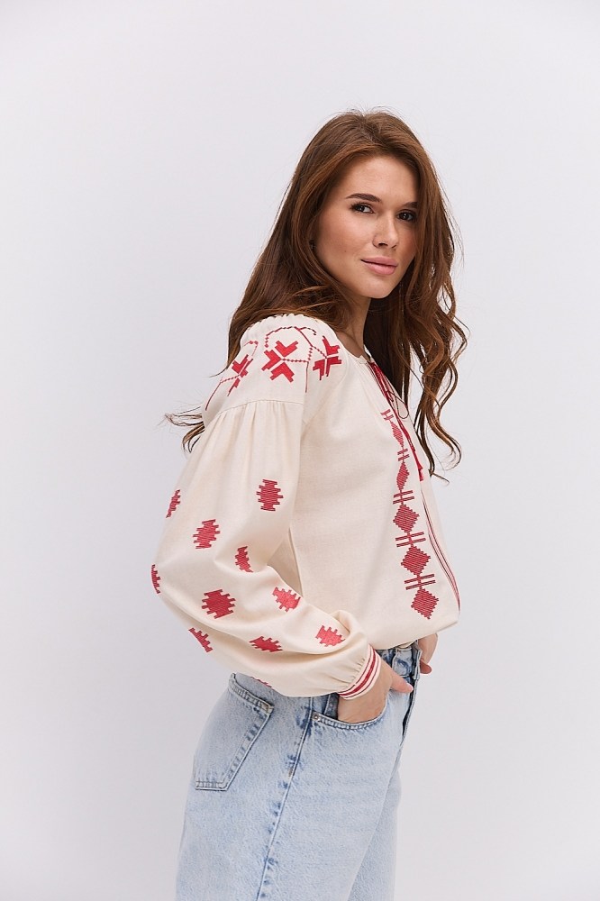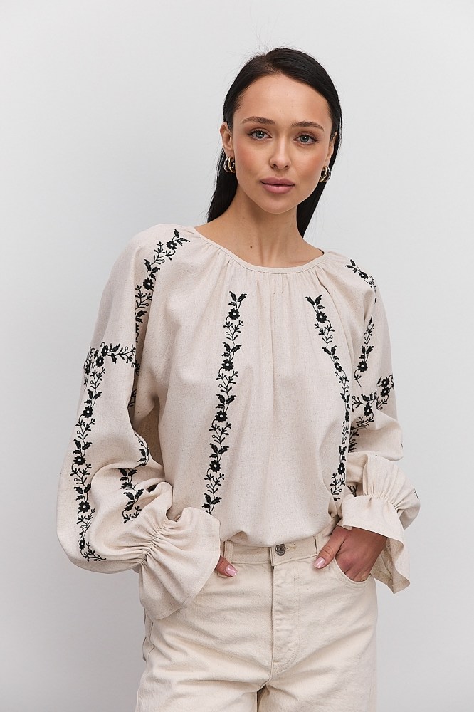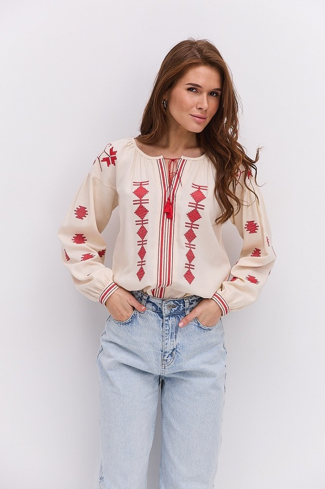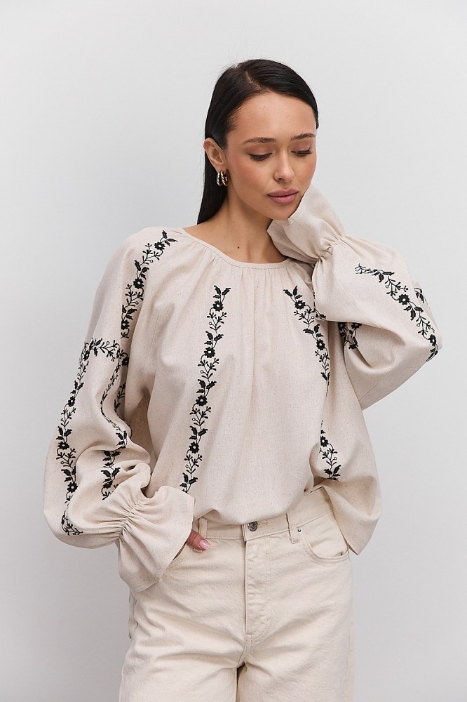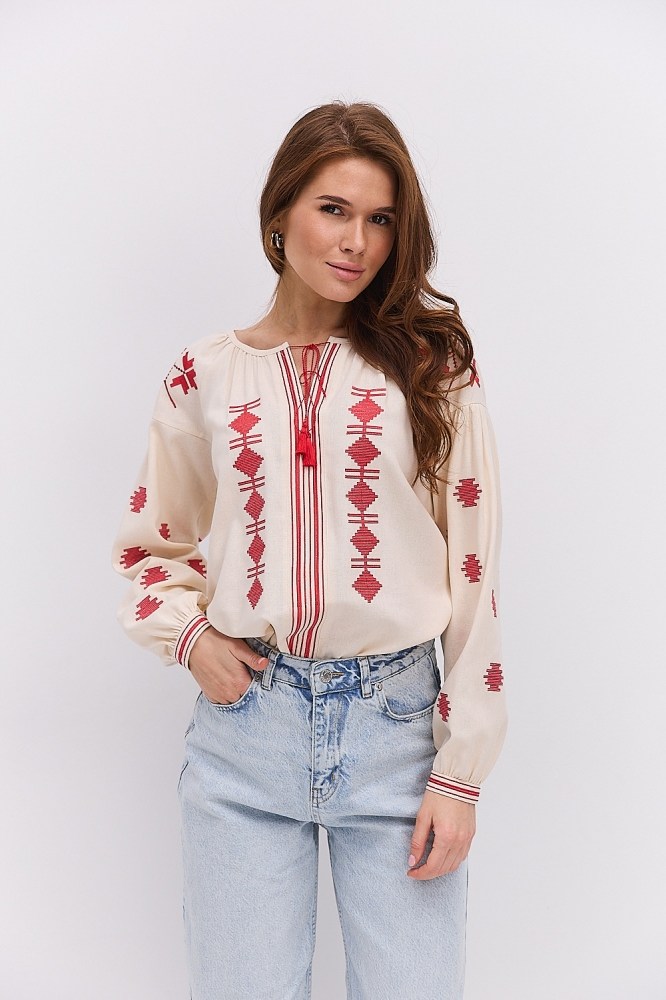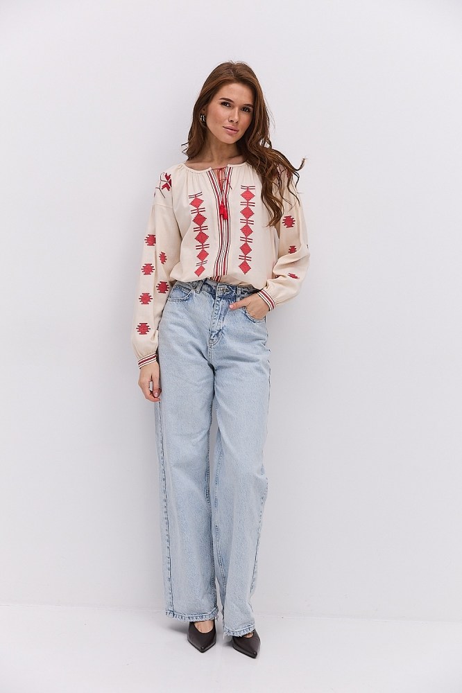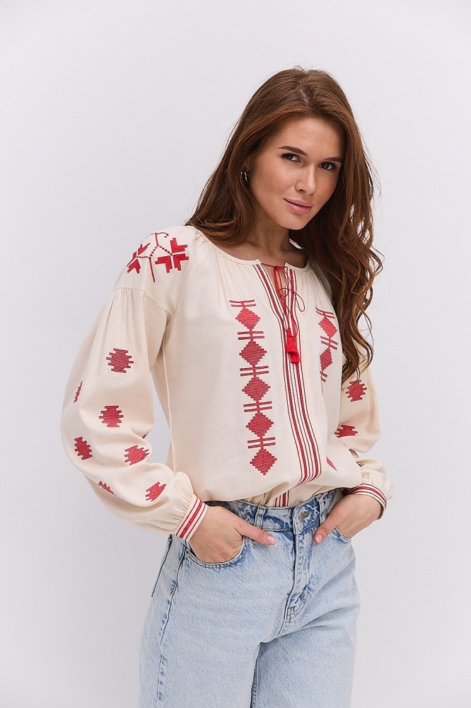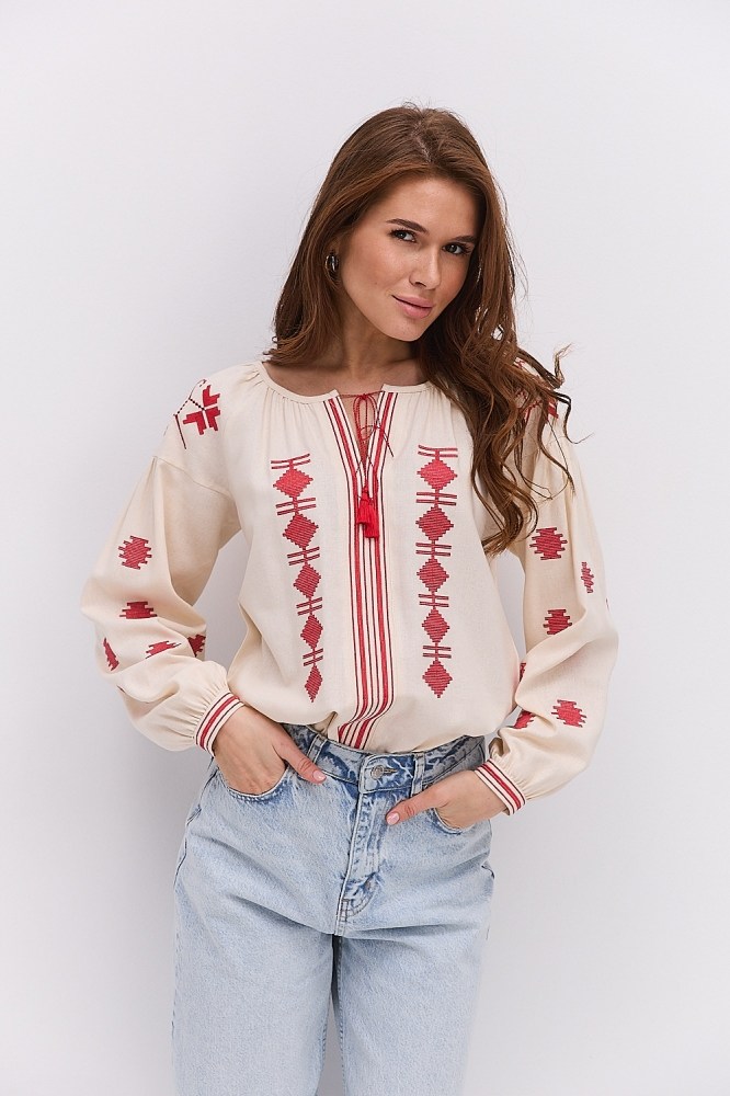 С вышиванкой бежевого цвета вы можете комбинировать и классические черные либо светлые брюки, юбки, и молодежные джинсы всевозможных расцветок. Вышитые блузы бренда Arjen хорошо смотрятся и с классическими туфлями-лодочками, и с обувью на низком ходу, и даже с кедами и городскими кроссовками. Создавайте свой неповторимый образ с бежевой вышиванкой от украинского производителя, оформляйте заказ через корзину сайта!