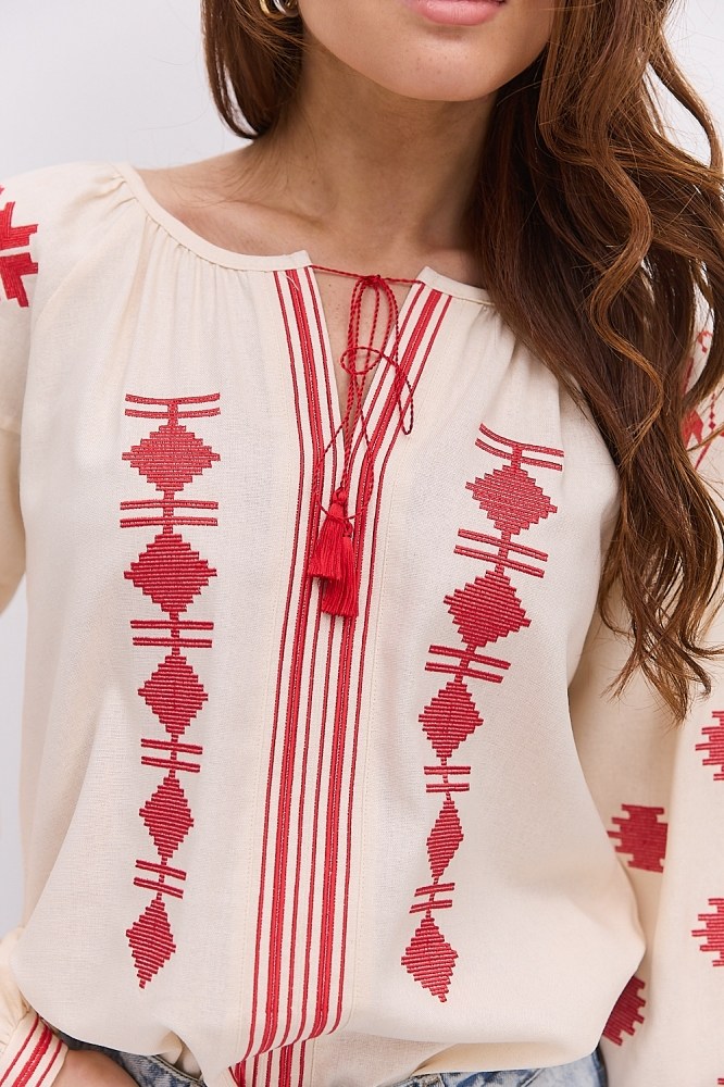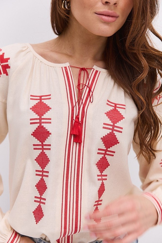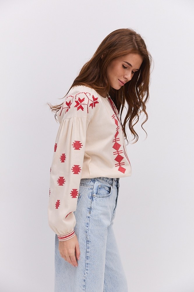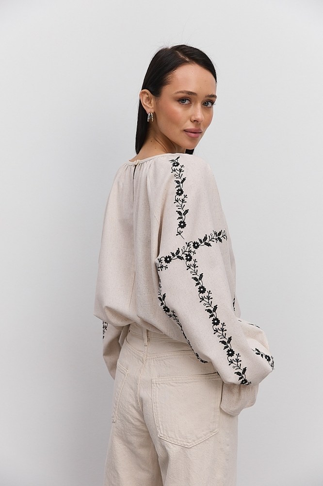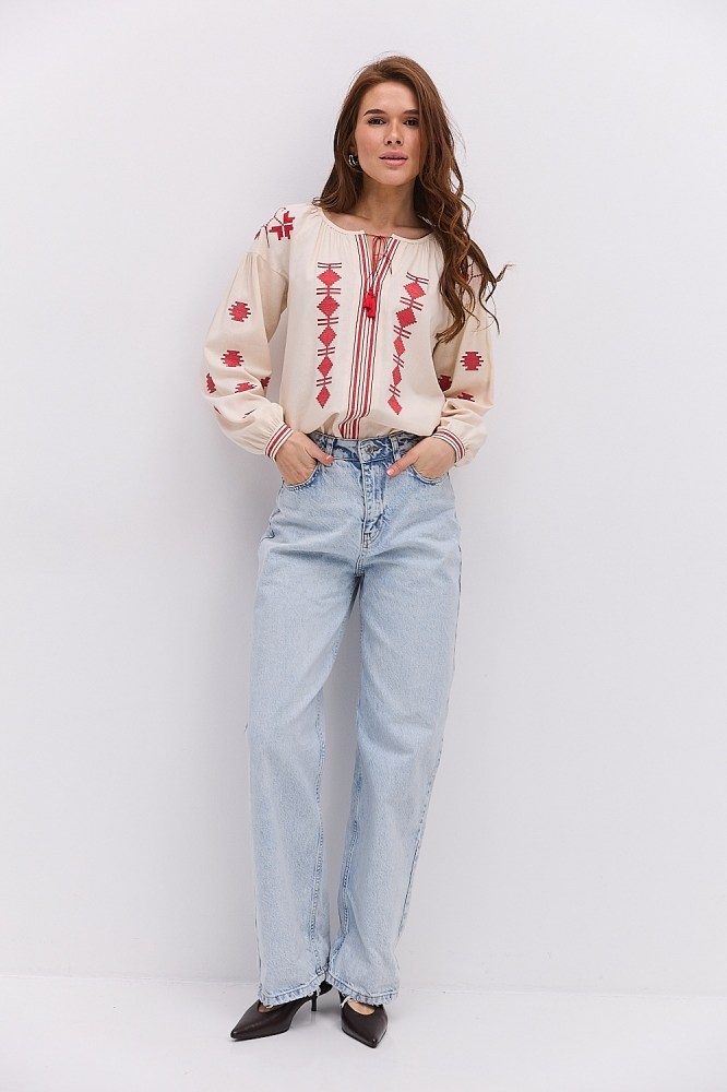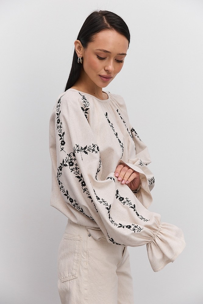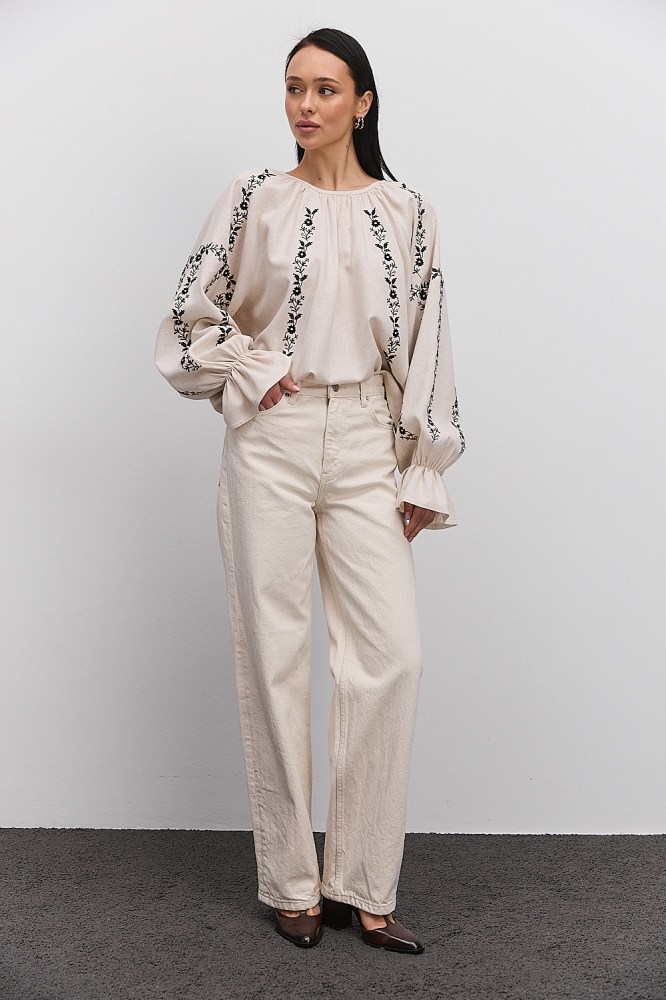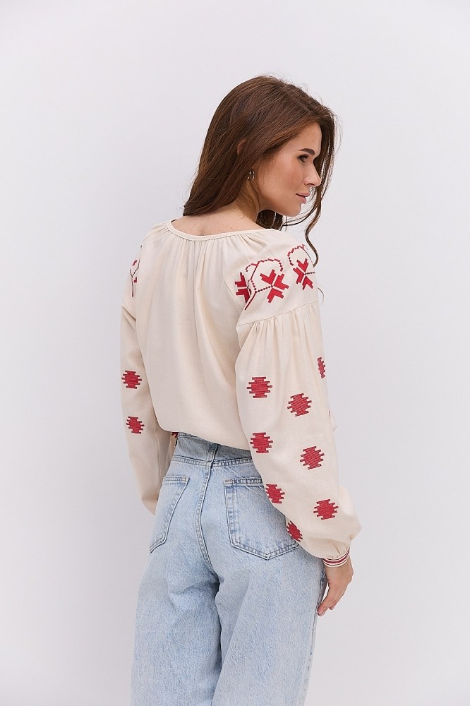 С вышиванкой бежевого цвета вы можете комбинировать и классические черные либо светлые брюки, юбки, и молодежные джинсы всевозможных расцветок. Вышитые блузы бренда Arjen хорошо смотрятся и с классическими туфлями-лодочками, и с обувью на низком ходу, и даже с кедами и городскими кроссовками. Создавайте свой неповторимый образ с бежевой вышиванкой от украинского производителя, оформляйте заказ через корзину сайта!