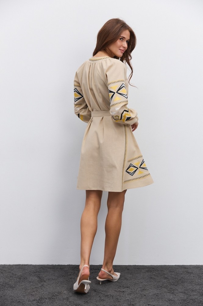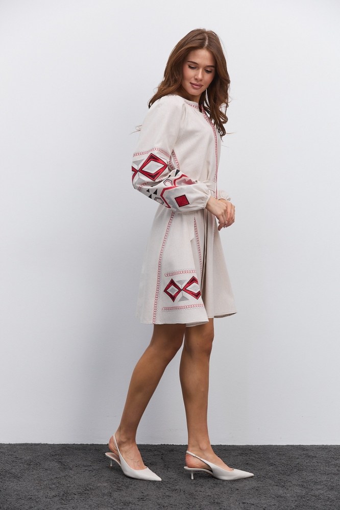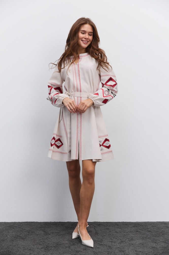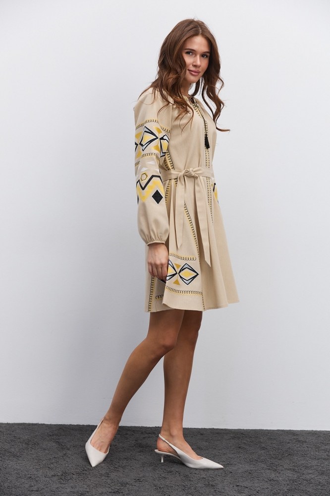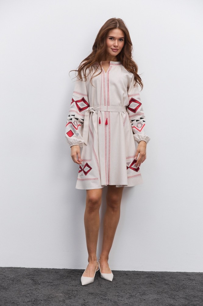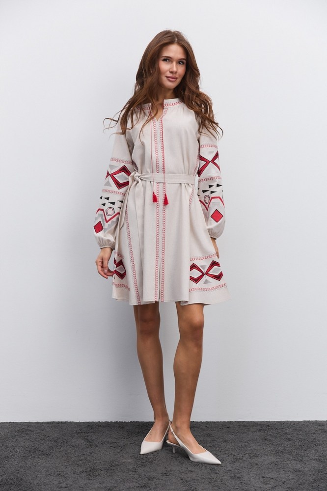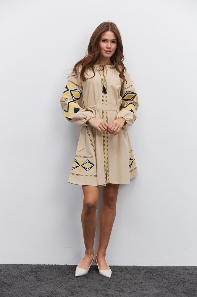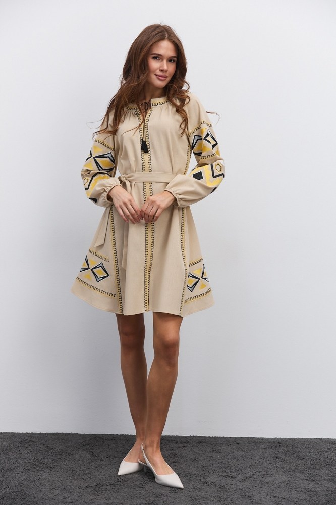 Нарядная и в то же время практичная, универсальная – бежевая вышиванка от «Аржен» станет хорошей альтернативой моделям белого цвета, гармонично вписываясь в современный женский гардероб. Такая разновидность одежды сочетает в себе народные традиции и новые модные тренды, поэтому добавит каждому вашему наряду самобытности. Ассортимент бежевых женских вышиванок нашего производства включает не только блузы, а еще и стильные вышитые платья.