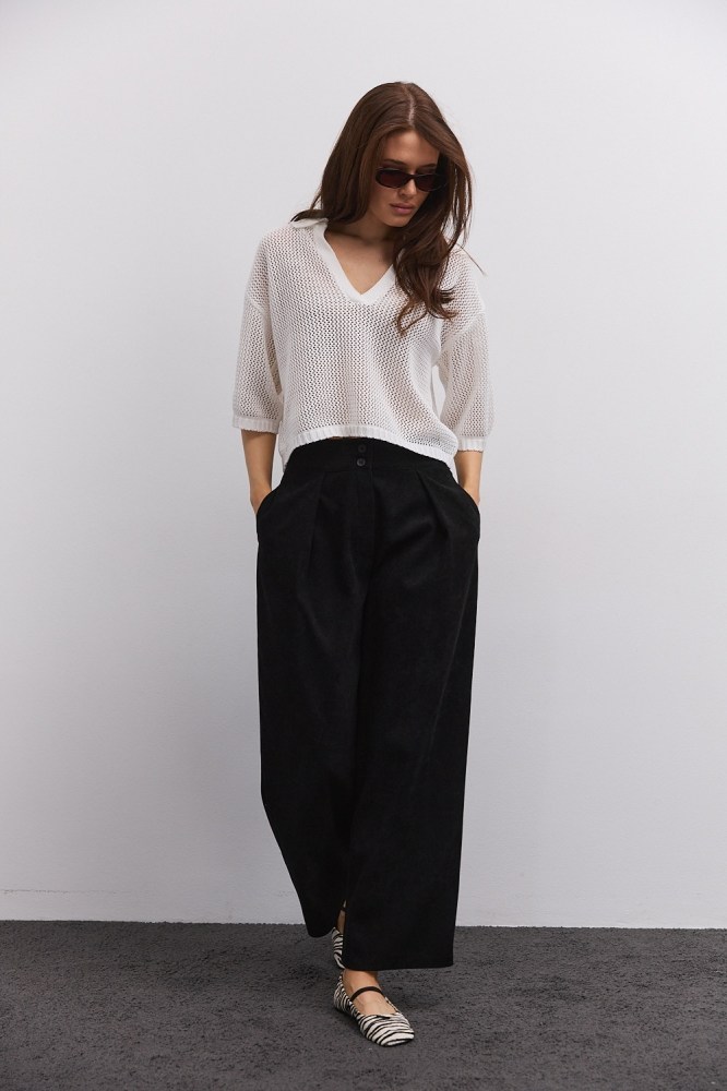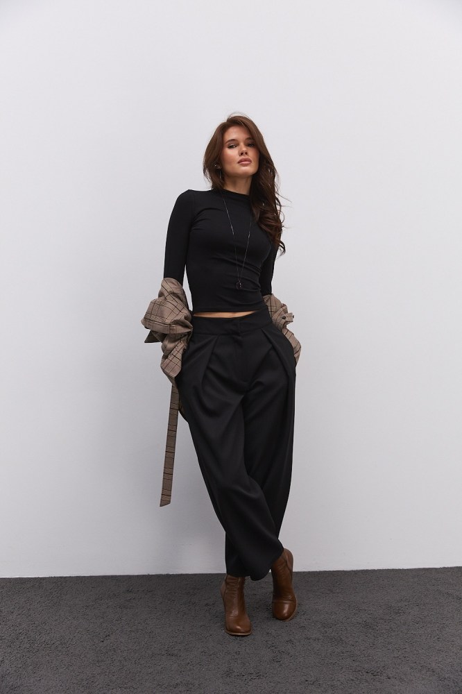 В гардеробе каждой женщины обязательно должны быть черные брюки. Этот цвет идеально сочетается с любым верхом, поэтому с помощью хороших черных брюк вы сможете составить прекрасные образы для работы, неформальной или праздничной обстановки. Просто подберите один-два фасона, которые идут вам больше всего, и вам не будет равных!