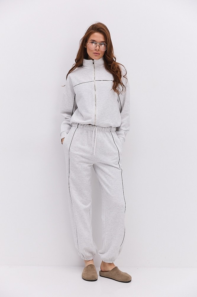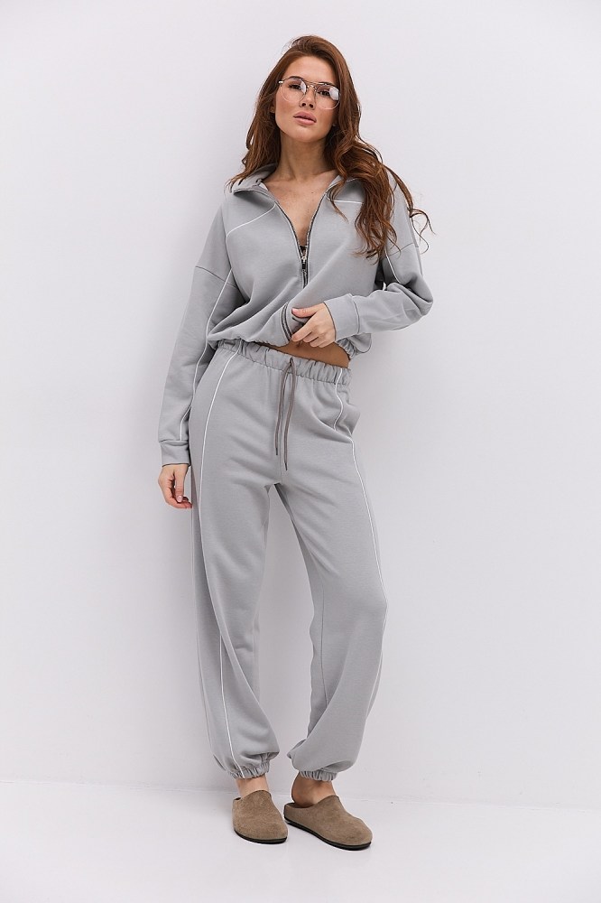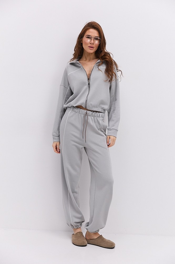 Покупая одежду напрямую у производителя, вы получаете модные изделия по выгодным ценам, гарантию качества, быструю доставку, а также можете воспользоваться специальными сезонными предложениями. Купить трикотажный серый костюм для женщин еще никогда не было так просто: заходите в наш каталог, добавляйте в корзину необходимые позиции и оформляйте заказ. Мы позаботимся о быстрой отправке, обеспечивая оперативную доставку одежды по всей Украине.