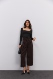 Приталенный силуэт говорит сам за себя. Одежда имеет расширенную линию плеча, зауженную талию и низ изделия.