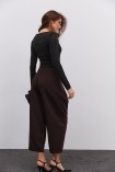 Силуэт трапеция в одежде тоже имеет свои особенности - расширение от линии плеча или проймы. Одежда, выполненная в этом силуэте, может быть как свободной по всей длине, так и фиксироваться изящным поясом в области талии.