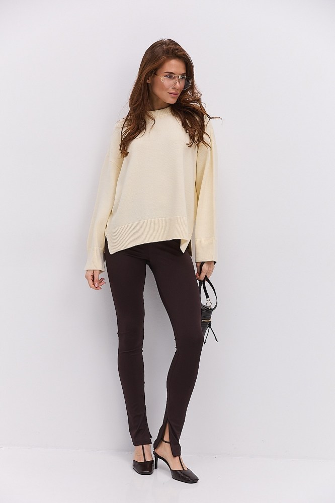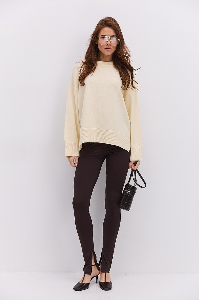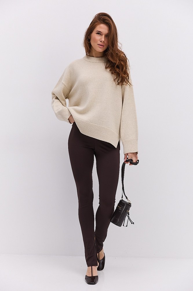 - ✓ Длина изделия, фасон и силуэт – они должны соответствовать вашему типу фигуры, чтобы красивая кофта с рукавами подчеркивала ваши достоинства, не акцентируя внимание на возможных недостатках. Речь идет не только о приталенном или прямом силуэте изделия, но и об остальных деталях. Например, модные в этом сезоне объемные рукава будут уместны для обладательниц узких плеч и широких бедер (тип фигуры «груша»), а вот если плечи широкие, лучше остановить выбор на моделях с рукавами-регланами. От длины кофты также зависит восприятие женской фигуры: если края изделия заканчиваются на самой широкой части бедер, они будут казаться пышнее (такая длина подходит для типа фигуры «морковь», «прямоугольник»), укороченные кофты с длинными рукавами визуально вытягивают рост и подходят для невысоких девушек с тонкой талией. Длина ниже линии бедер позволяет скрыть пышный низ силуэта. Поэтому смотрите, чтобы все элементы выбранной вами модели вместе создавали эффект «песочных часов», добавляя или скрывая объем именно там, где это необходимо вашему типу;