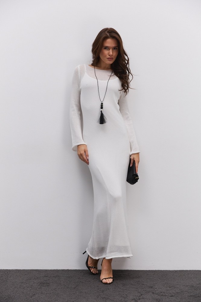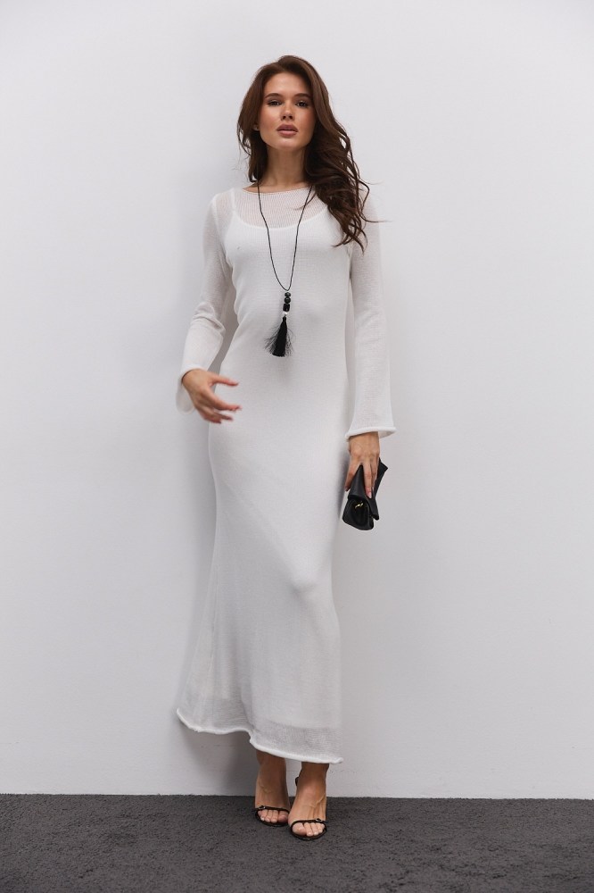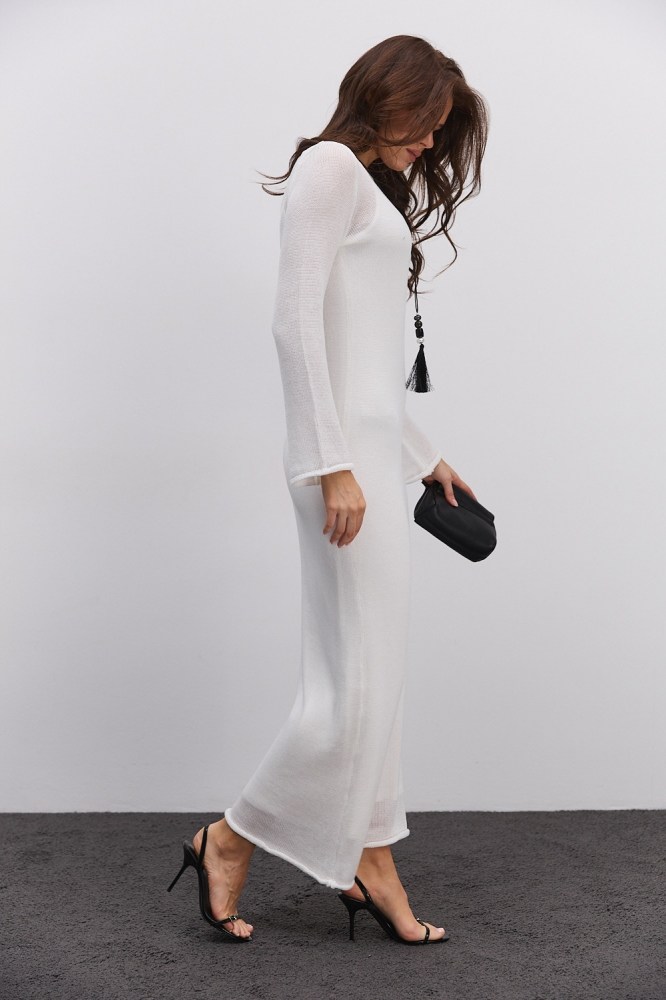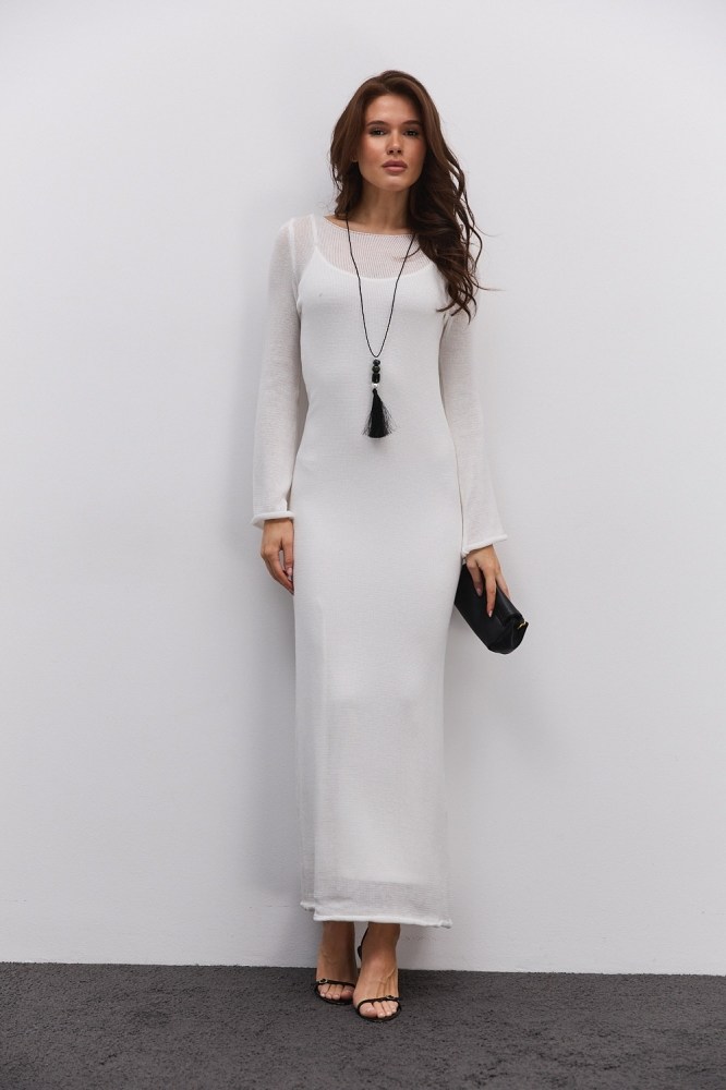 Длинное платье-вышиванка молочное с деревом жизни крестиком