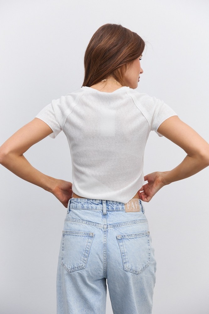 Практичная, универсальная и в то же время стильная – молочная женская футболка стала must have вещью в гардеробе. Она легко впишется в самые разнообразные аутфиты, от делового до спортивного, сочетаясь с одеждой разных фасонов и расцветок. Базовая футболка молочного цвета будет выручать вас круглый год, а модели с трендовыми узорами, принтами или надписями станут финальным штрихом в ваших летних образах.
