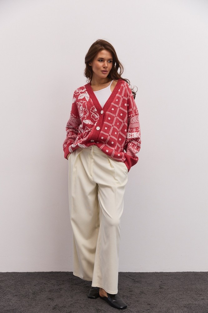 Для эффектного и в тоже время комфортного завершения модных образов зимой и в межсезонье выбирайте красный кардиган, и вы не прогадаете. Такая вещь гармонично сочетается с одеждой классических фасонов и цветов (черный, белый, серый, темно-синий), добавляя изюминку каждому наряду.