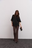 Силуэт трапеция в одежде тоже имеет свои особенности - расширение от линии плеча или проймы. Одежда, выполненная в этом силуэте, может быть как свободной по всей длине, так и фиксироваться изящным поясом в области талии.