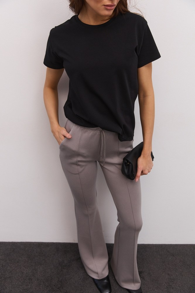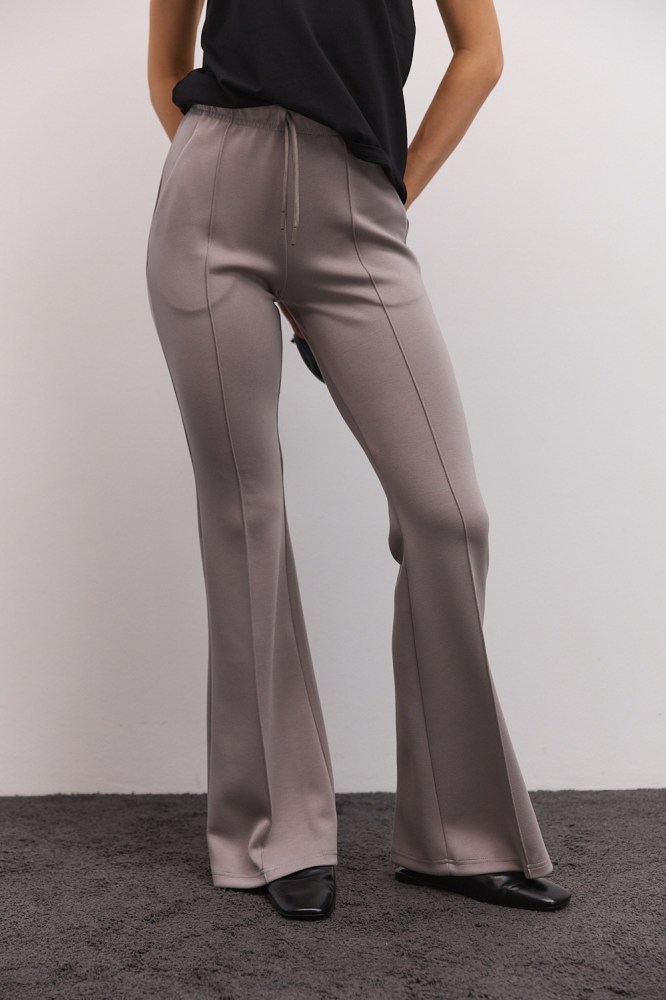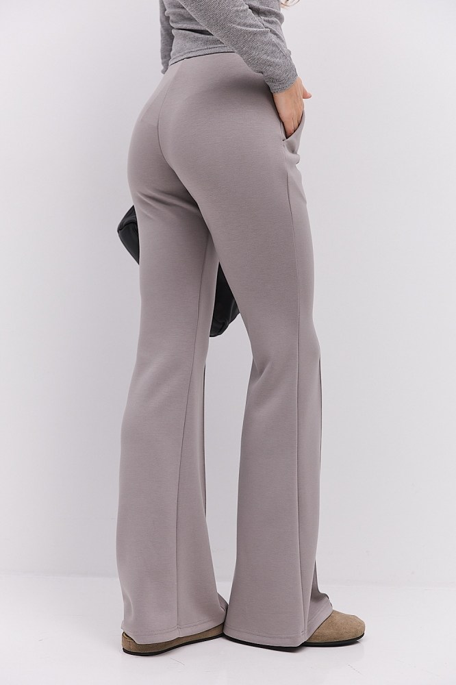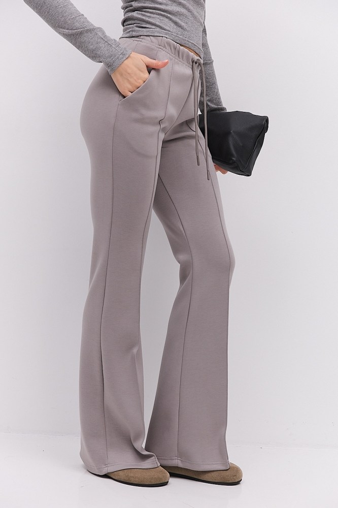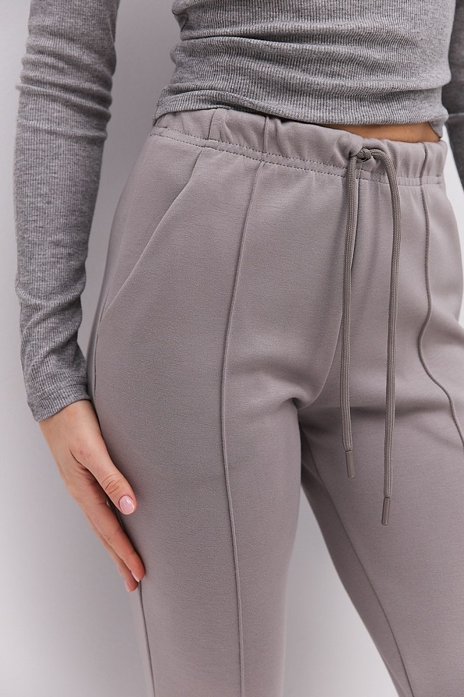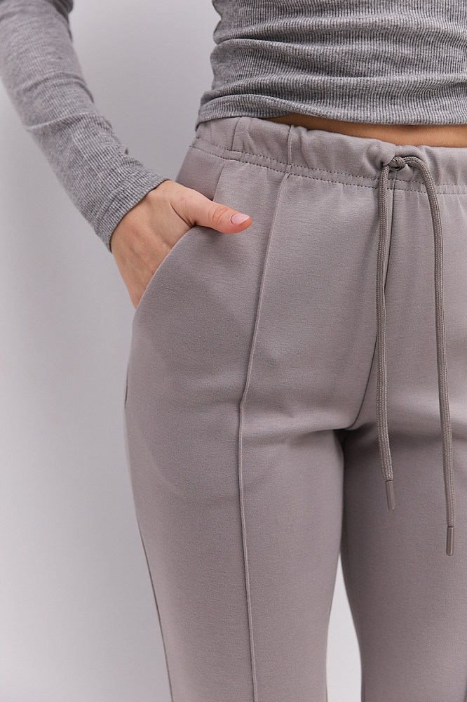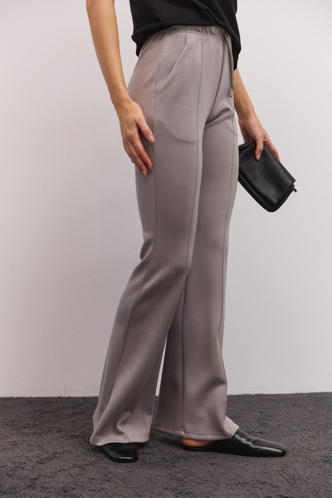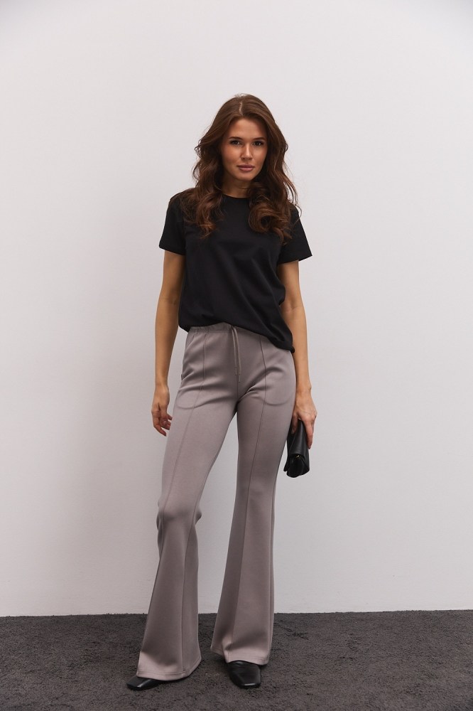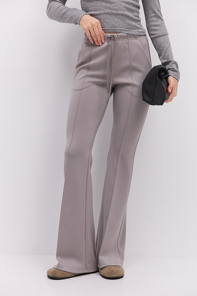 Жіночі трикотажні штани кльош сірі зі строчками спереду +2 кольори
