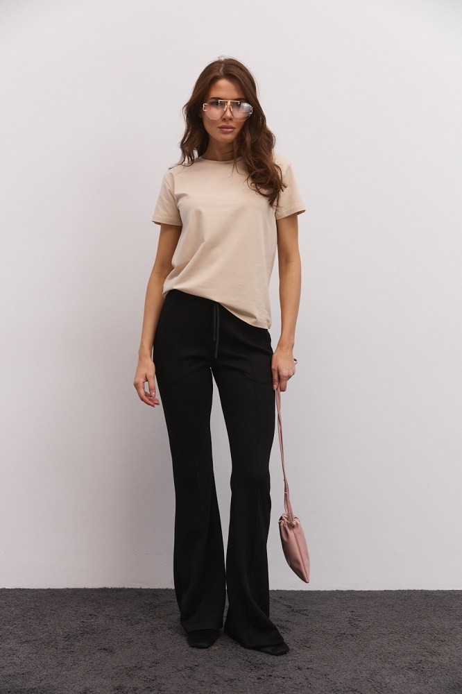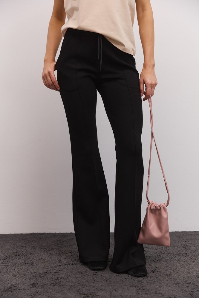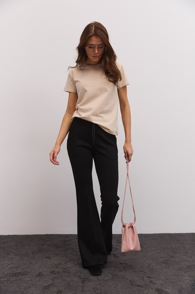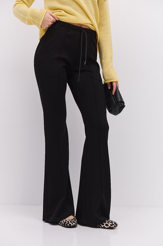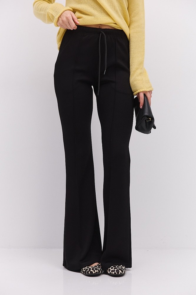 Жіночі трикотажні штани кльош чорні зі строчками спереду +2 кольори